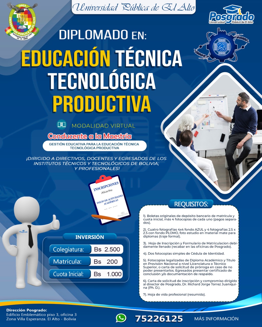 Convenio UPEA, Diplomado en Educación Tecnica Tecnológica Productiva